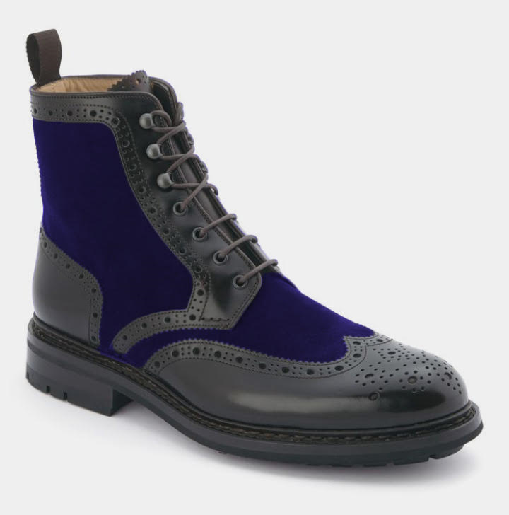 Men Black Leather Blue Suede Wing Tip High Ankle Casual Lace Up Boot