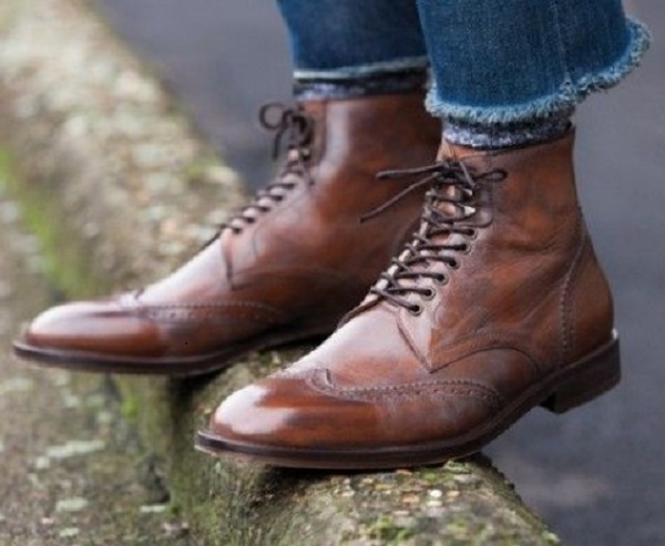 Men Brown Desert Oxfords WingTip Style Leather Formal Boot Adult
