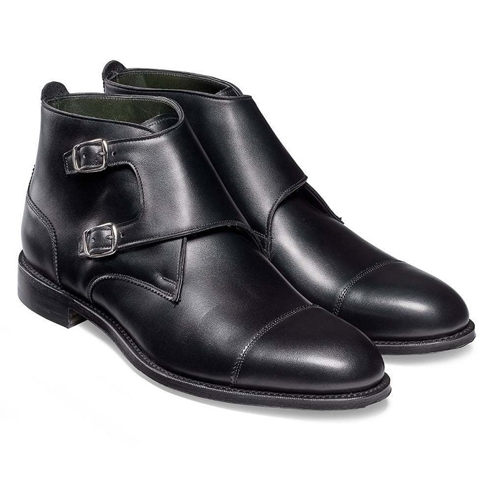 Handmade Men’s Ankle High Leather Cap Toe Black Double Monk Strap Boot