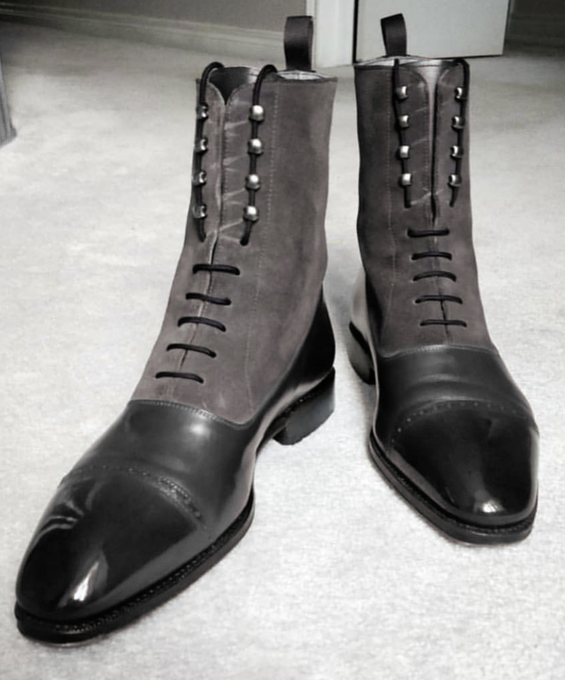 High Ankle Pointed Cap Toe Gray Black Handmade Genuine Leather Stylish Boots