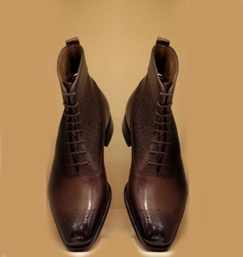 Handmade Men’s Ankle High Leather Boot Men’s Brown Lace Up Boots