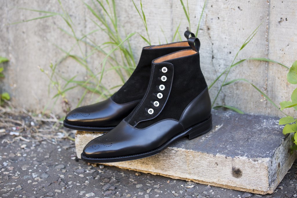 Handmade Men's Black Brogue Toe Ankle High Boots, Men Leather Suede Button Boots
