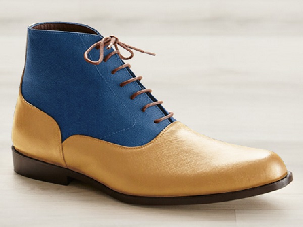 Handmade Men Tan Blue Tan Leather Suede Chukka Casual Lace Up Boot