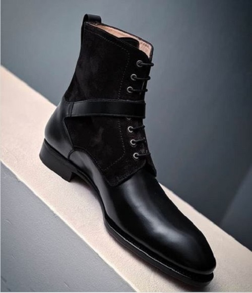 New Men Handmade Black Leather Suede Ankle High Dress Formal Boots For Men's