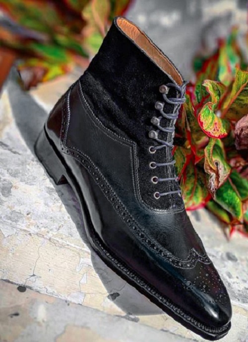 Men New Handmade Black Lace Up Ankle High Leather Boots, Dress Formal Boots