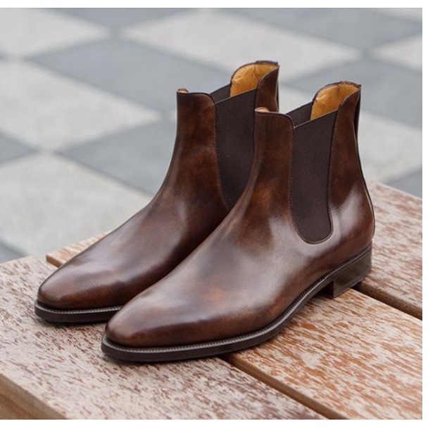 Handmade Antique Brown Chelsea Boots, Men Real Leather Dress Boot