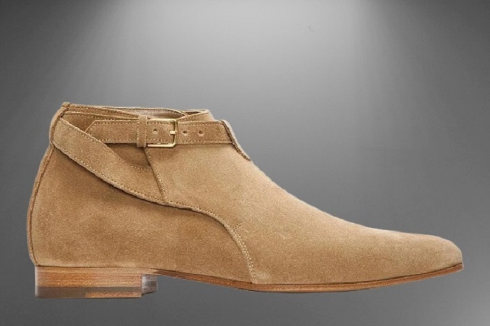 Men’s Handmade Half Ankle Suede Boots, Men's Beige Color Jodhpurs Buckle Boots