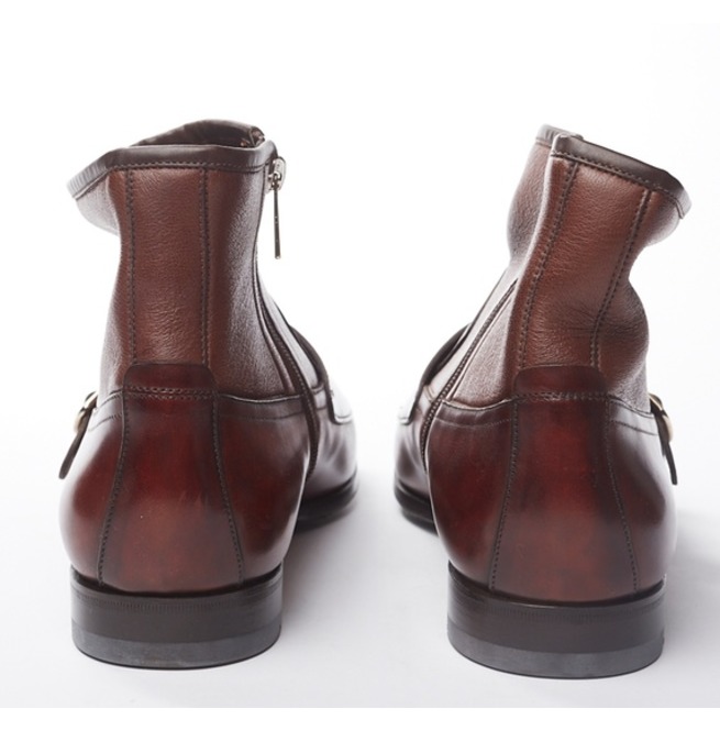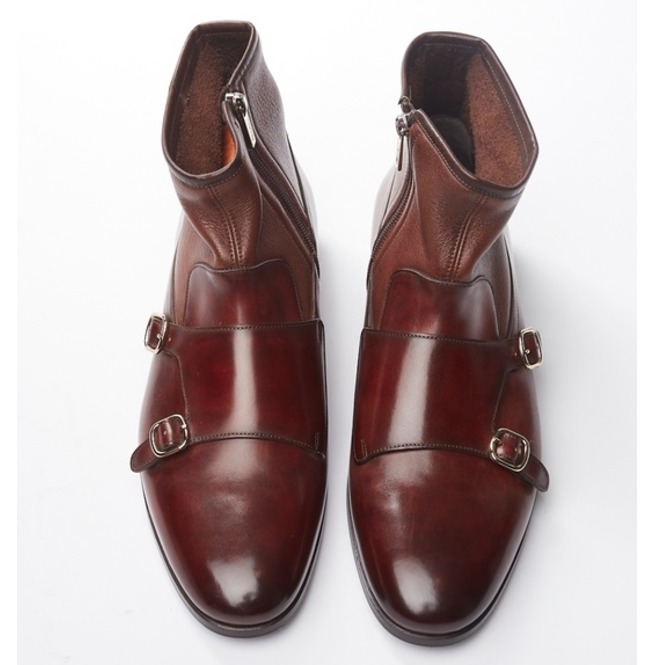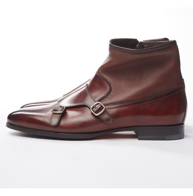 Handmade Mens Double Monk Side Zip Ankle Boots Brown Dress Boots for Men