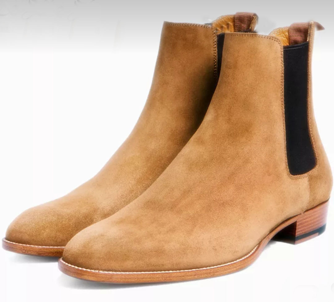 Hand Crafted Ankle Tan Beige Chelsea Suede Boots, Dress Formal Boots