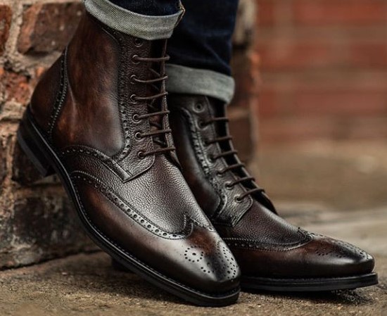 Handmade Mens Dark Brown Leather Wing Tip Brogue Ankle Boots, Men Designer Boots