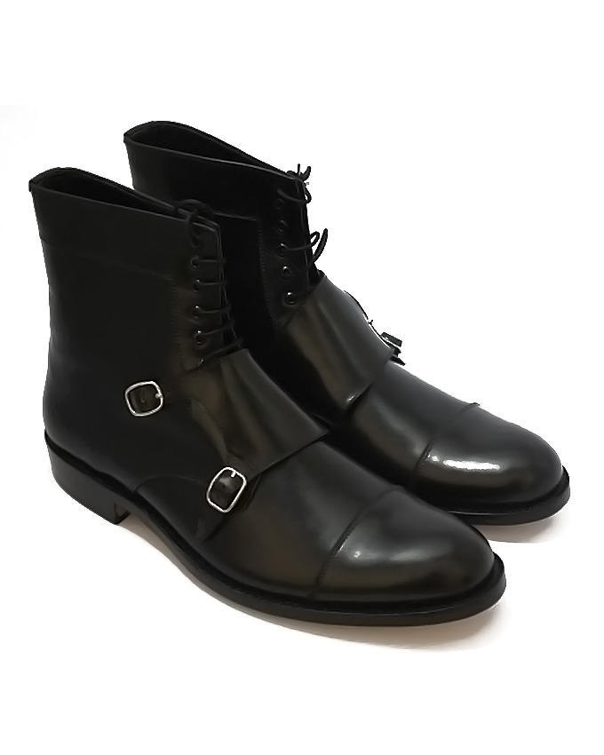 Handmade Pure Black Patent Leather Ankle High Stylish Buckle Boots for Men's