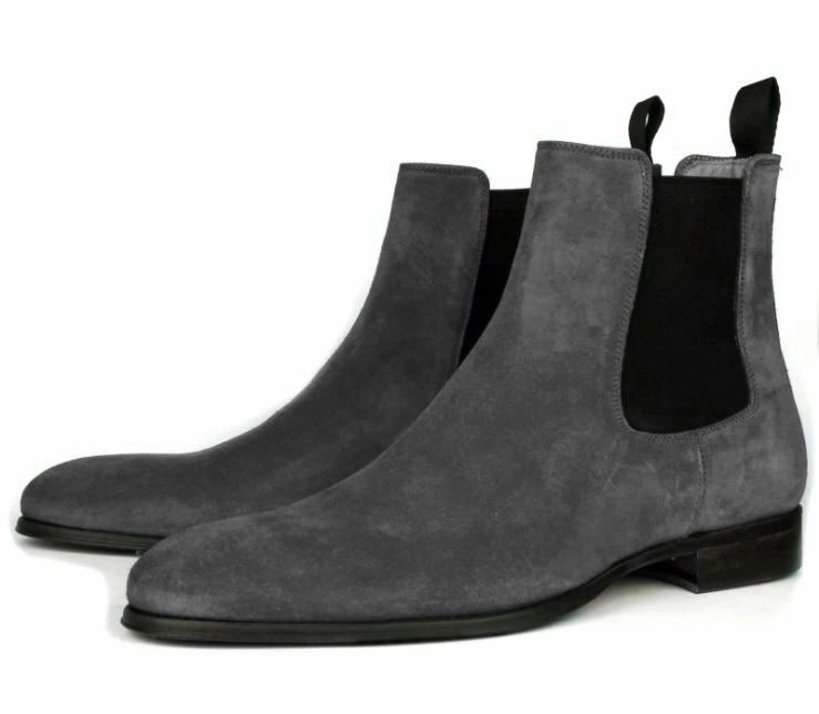 Handmade Trendy Bespoke Gray Chelsea Ankle High Suede Boots