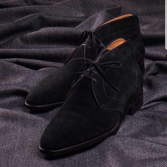 Pure Handmade Stylish Black Suede Casual Chukka Lace Up Boots For Men's