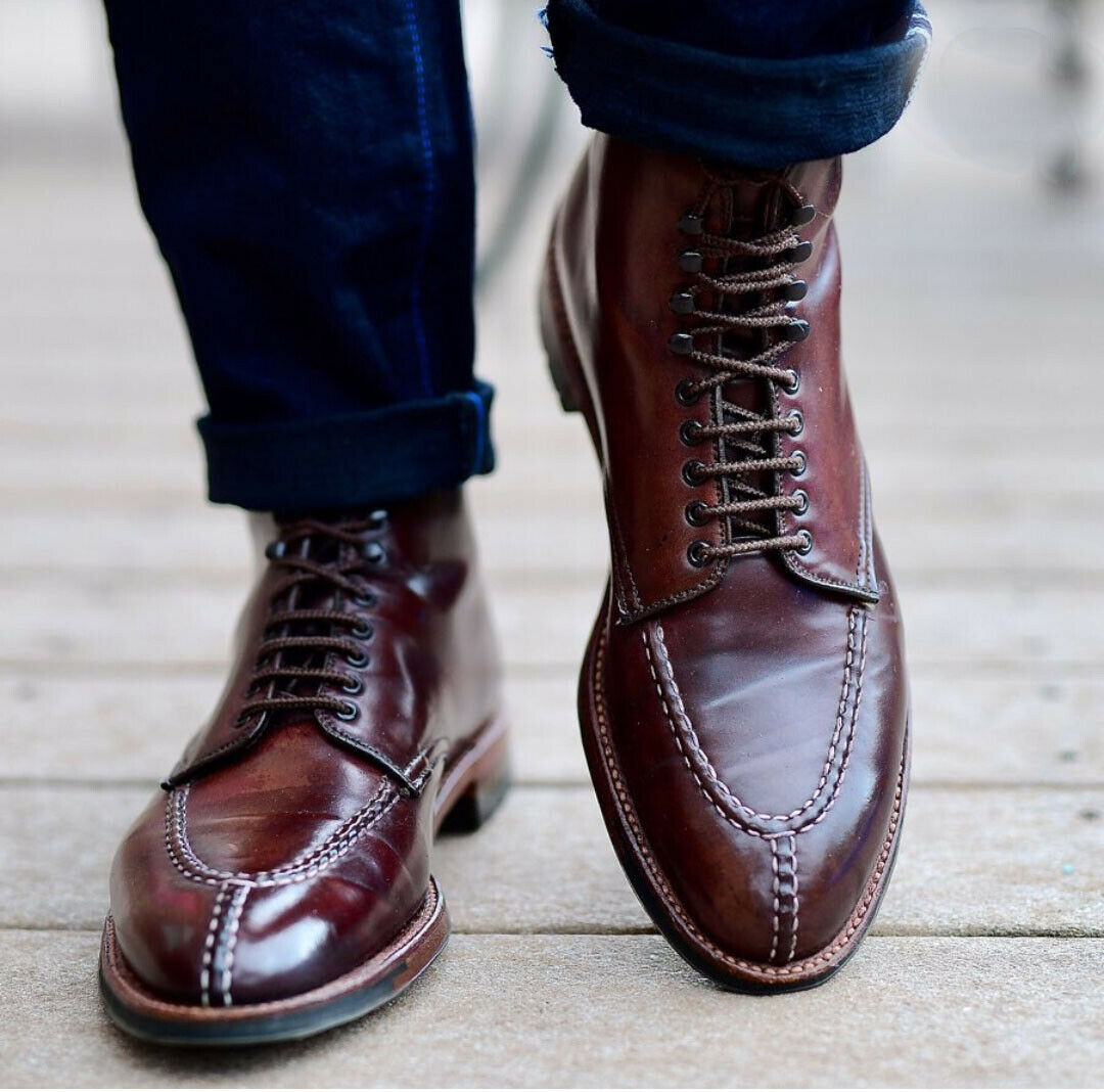 Handmade Men Split Tie Ankle Boots New All Genuine Leather Men's Brogue Boots