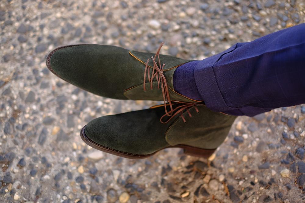 Handmade Half Ankle Olive Green Chukka Lace Up Suede Boot,Men's Dress Boot