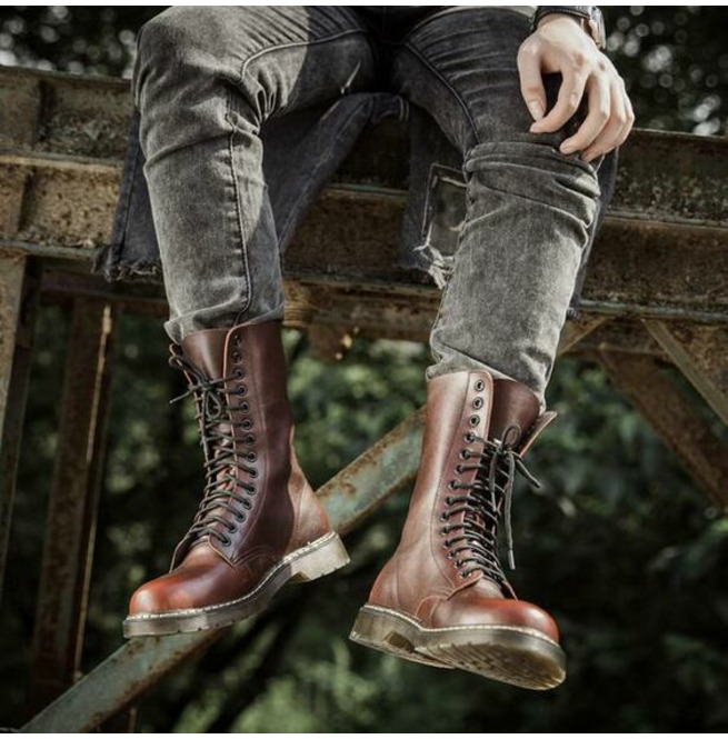 Men Handmade Brown Leather Lace up Military Boots, Combat Winter Boots