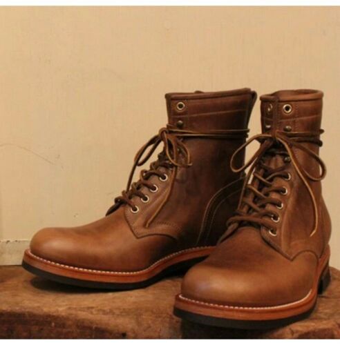 Handmade Men's Brown Round Toe Lace Up Ankle Dress Boots, Real Leather Boots