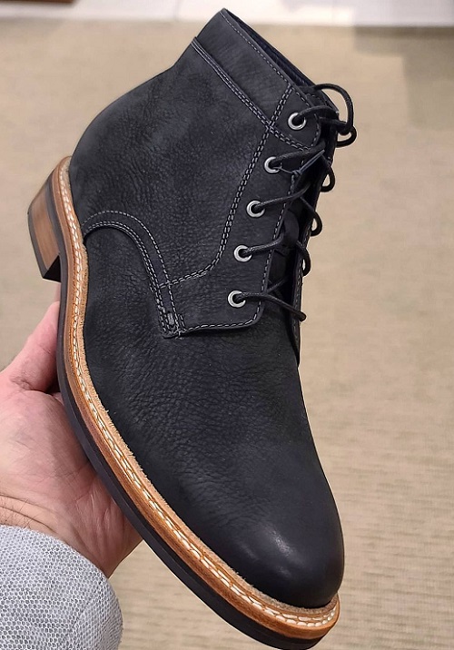 Hand-stitched Cowhide rough leather Black color boots for men