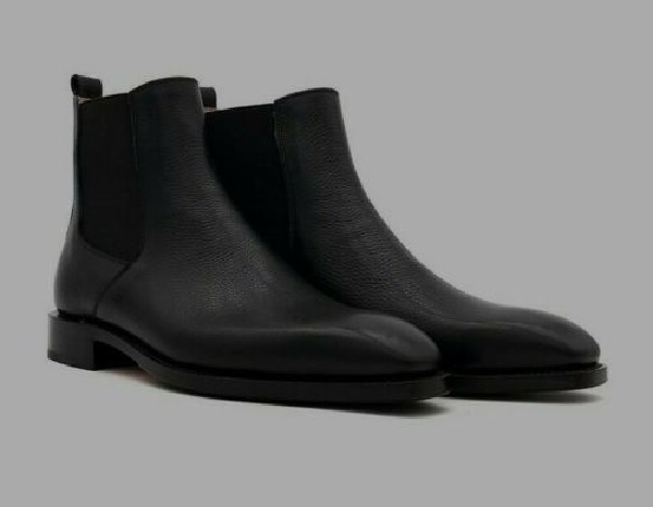 Men's New Handmade Ankle Black Grain Leather Chelsea Boots,Formal Dress Shoes