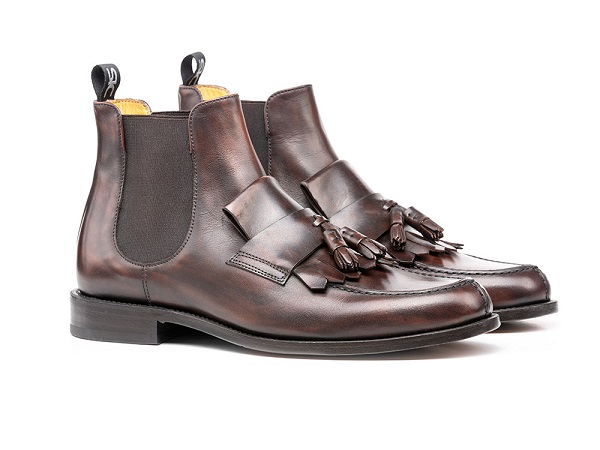 Brown Chelsea Tassels Fringed Jumper Slip On Genuine Leather Rounded Split Toe Ankle High Boots