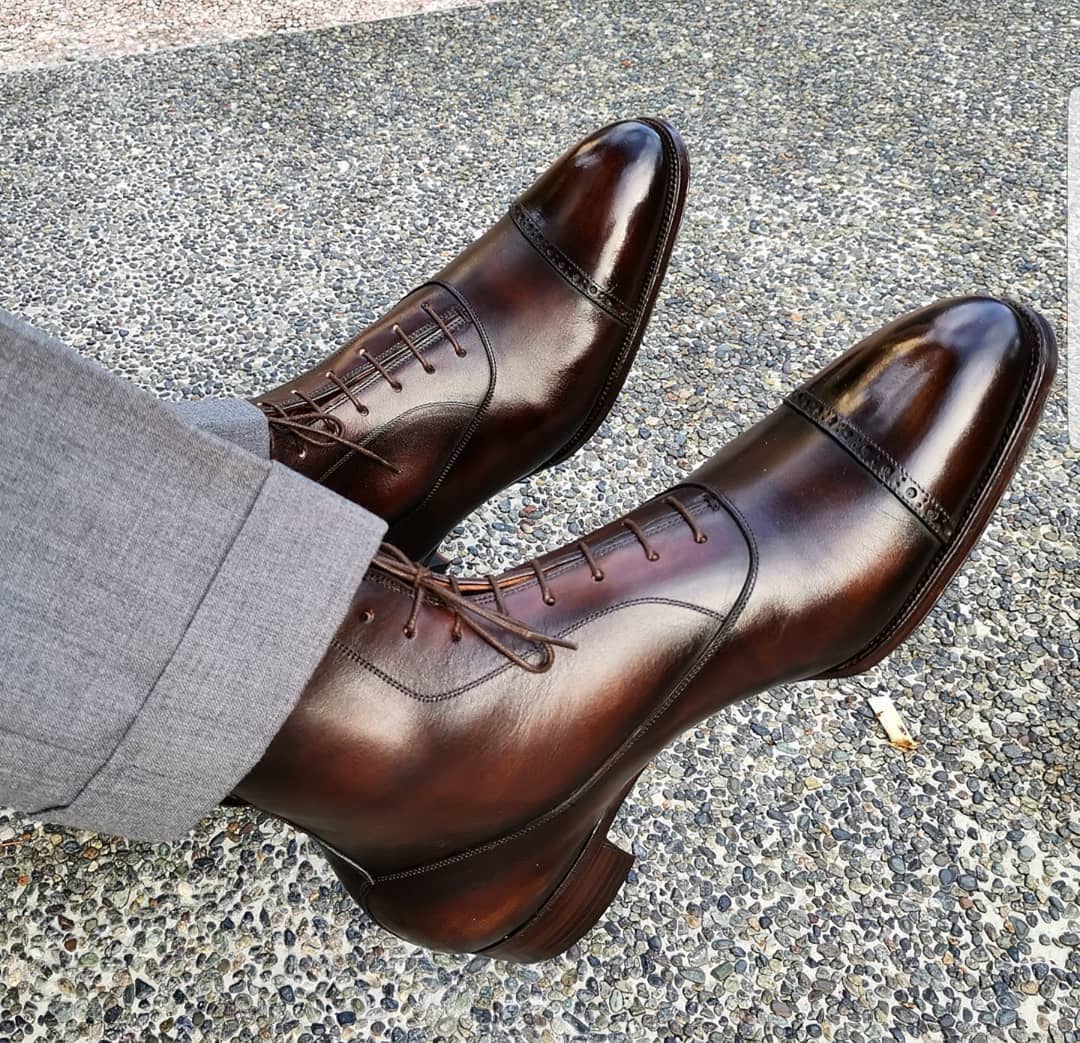 Handmade Men Wingtip Cap Toe Boots Brown Leather Boot, men ankle shoes
