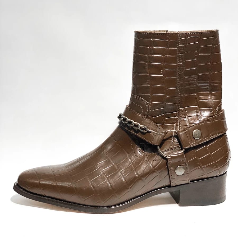Handmade Brown Alligator Leather Madrid Straps Boot,Dress Boot,Men's Boot