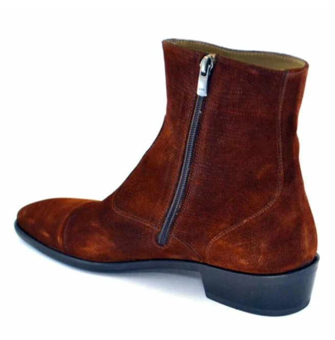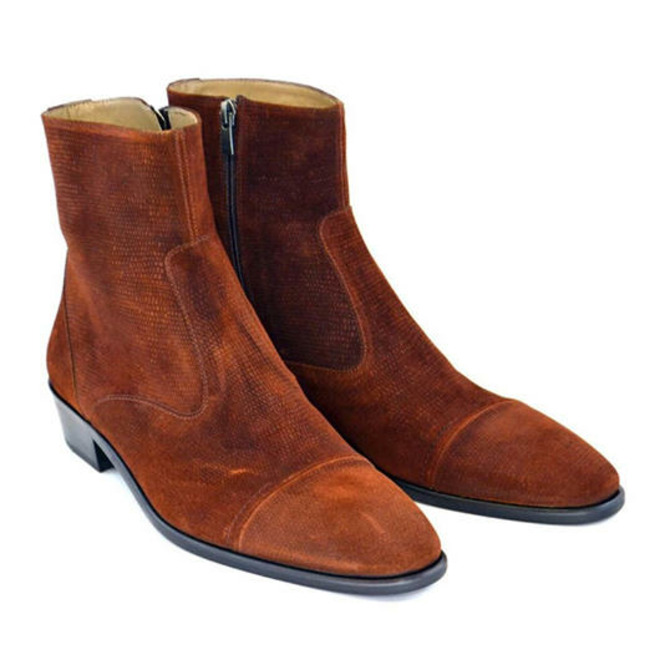 Handmade Men Brown Cap Toe Ankle Boots, Men Side Zipper Classic Ankle Boot