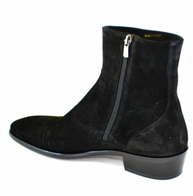 Handmade Men Black Cap Toe Ankle Boots, Men Side Zipper Classic Ankle Boot