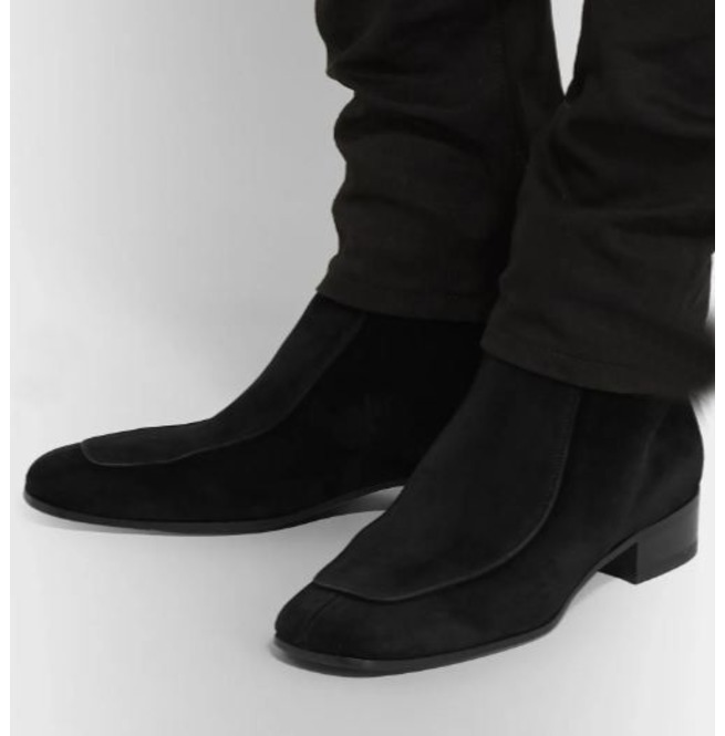 Handmade Men Black Suede Boot, Men Monk Strap Chelsea Boot, Zipper Boot Men