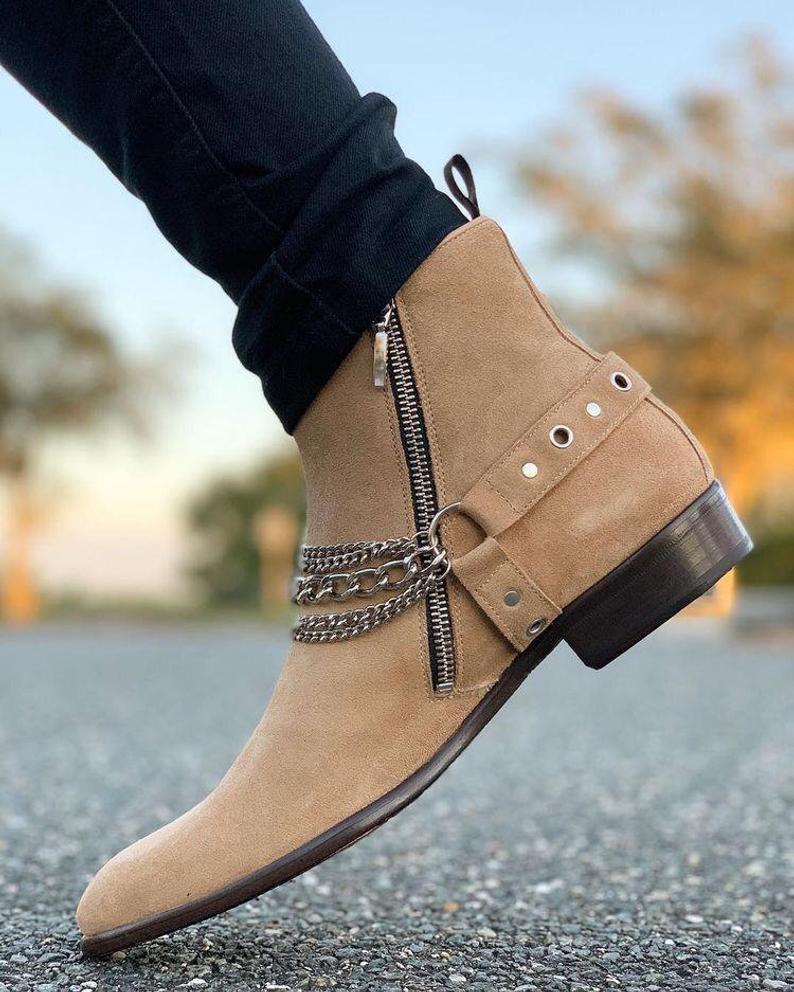 New Handmade Pure Beige Suede Leather Stylish Ankle Boots for Men's