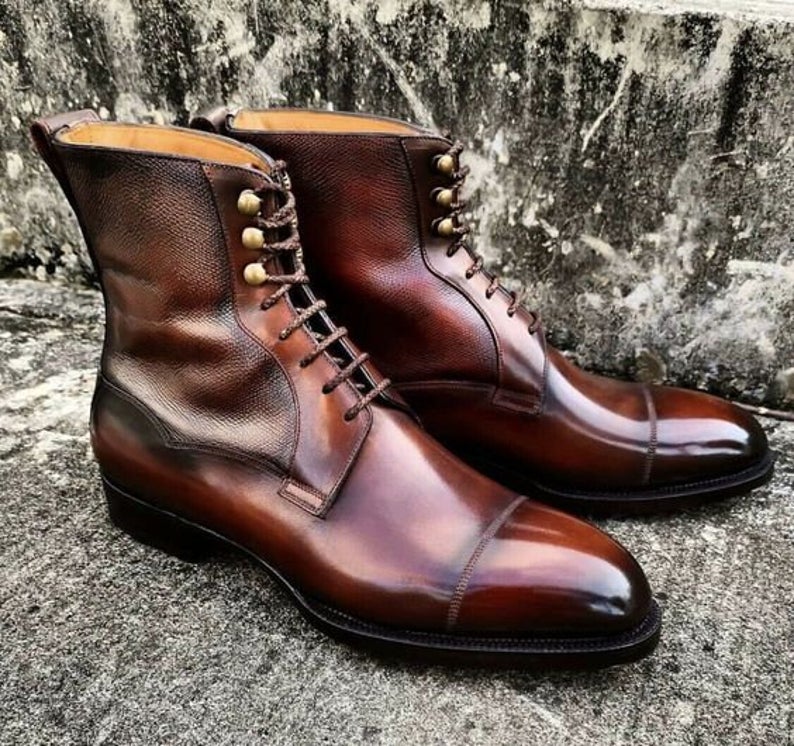 New Handmade Pure Leather Brown Ankle Boot For Men's