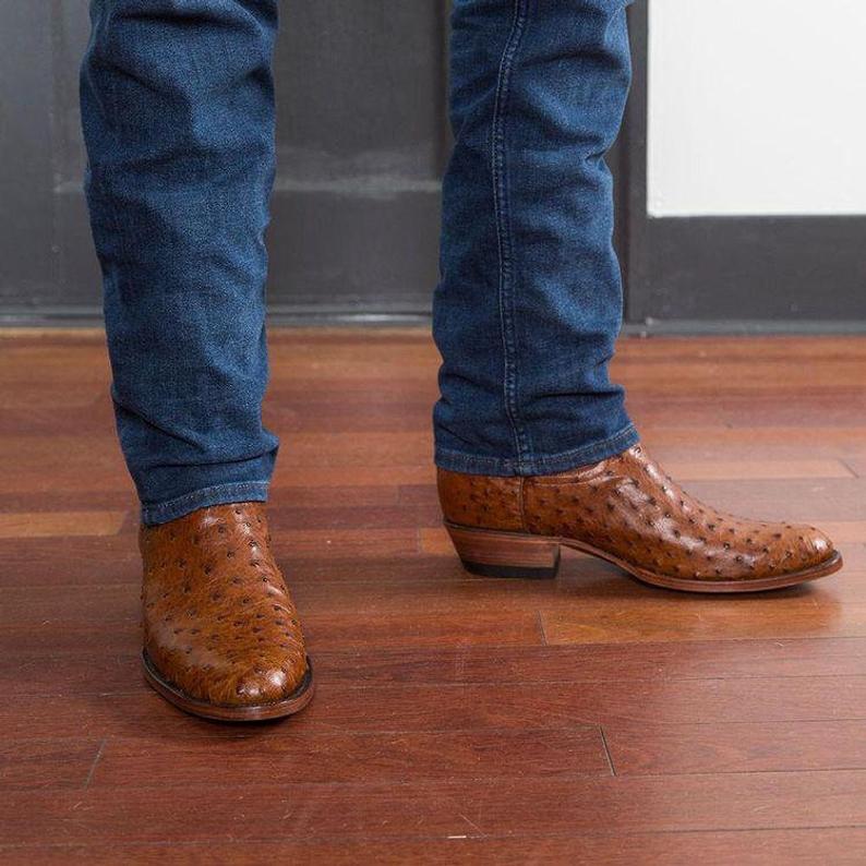 New Handmade Pure Brown Ostrich Leather Ankle Boots for Men's