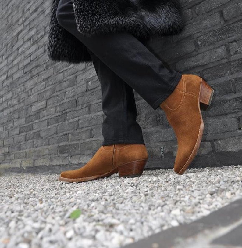 New Handmade Camel Suede Leather Stylish Zipper Ankle Boot for Men's