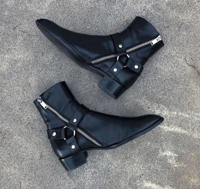 New Handmade Black Leather Stylish Motorcycle Zip Fastening Boots for Men's