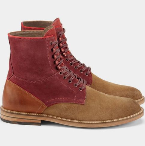 Men Tan Burgundy Leather Suede Oxford Ankle High boot In Suede Leather