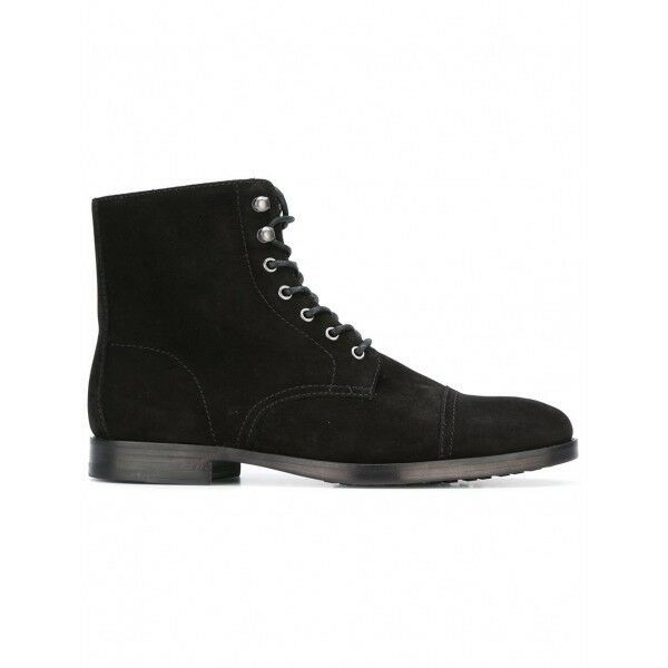 Men's Black High Ankle Rounded Cap Toe Real Suede Leather Lace Up Boots