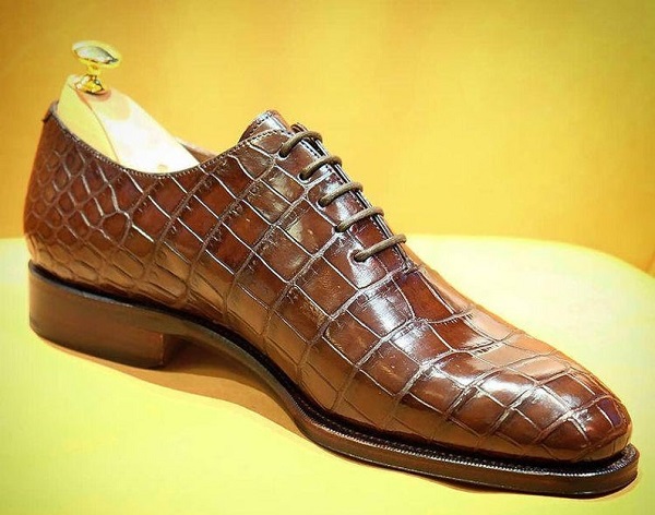 New Pure Handmade textured Leather Light Brown Alligator Stylish Lace Up Dress Shoes For Men's