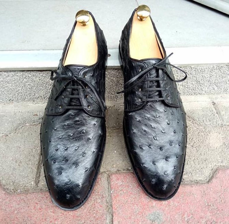 New Handmade Pure Black Ostrich Textured Leather Stylish Shoes for Men's