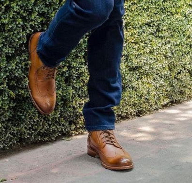 New Handmade Brown Shaded Leather Ankle Boots for Men'sLeather & Brown Ostrich Leather Cowboy Boots for Men's