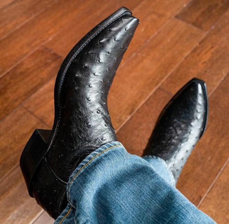 New Handmade Pure Black Ostrich Leather Cowboy Boots for Men's