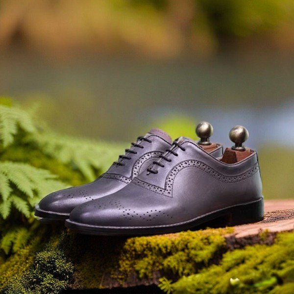 Men Stylish Brogue Dress Formal Shoes Leather Men's Grey Leather Lace Up Shoes