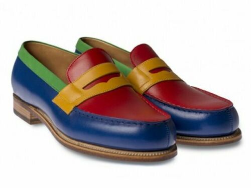 Handmade Mens Multi color Leather Shoes, Mens round toe leather Loafer slip ons