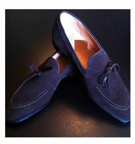 Handmade Men's Blue Color Suede Leather Loafer Slip Ons Formal Dress Derby Shoes