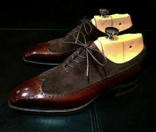 Handmade dark brown Wing Tip Brown Formal Shoes for men, Men brown Dress Shoes