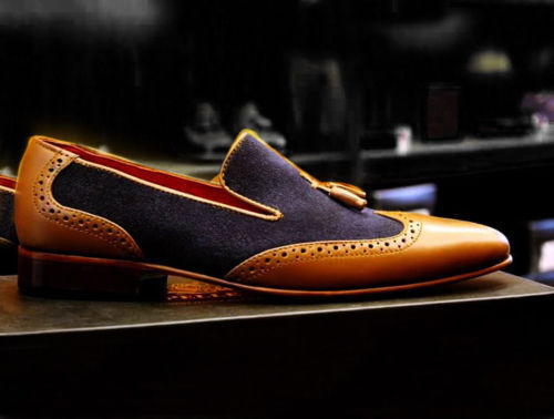 Handmade Tussle Leather Wing tip Slippers Casual Dress Wedding Loafer Shoes Men
