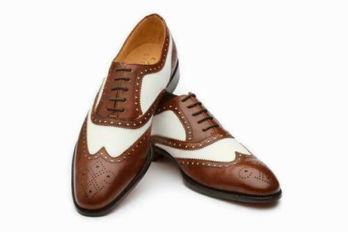 Mens Bespoke Shoes Handmade Two Tone Brown & White Leather Oxford Brogue Wingtip