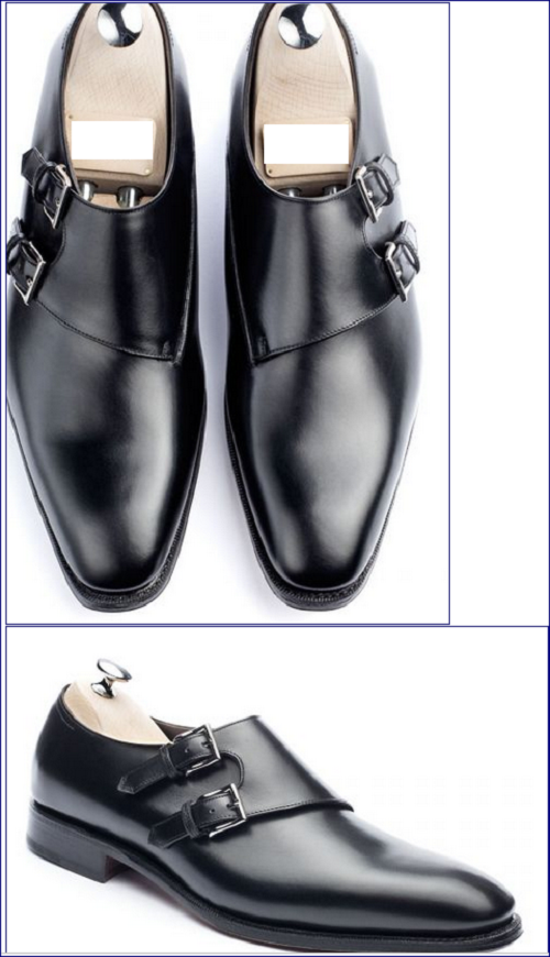 Mens Handmade Shoes Black Oxford Toe Monk Leather Formal Wear Casual Dress Boots
