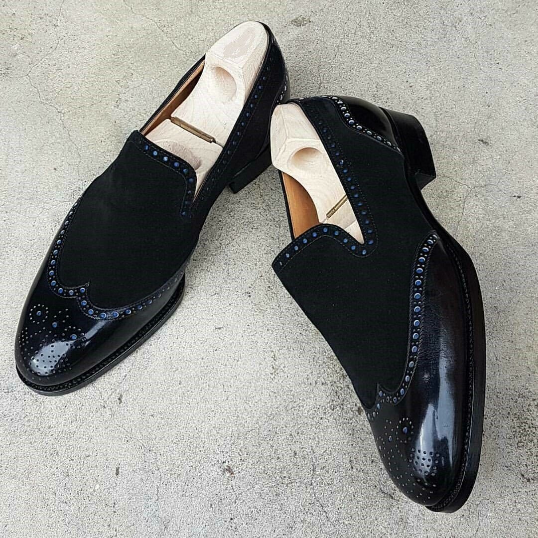Men's New Handmade Black Shoes, Men's Leather Suede Wingtip Dress Fashion Shoes