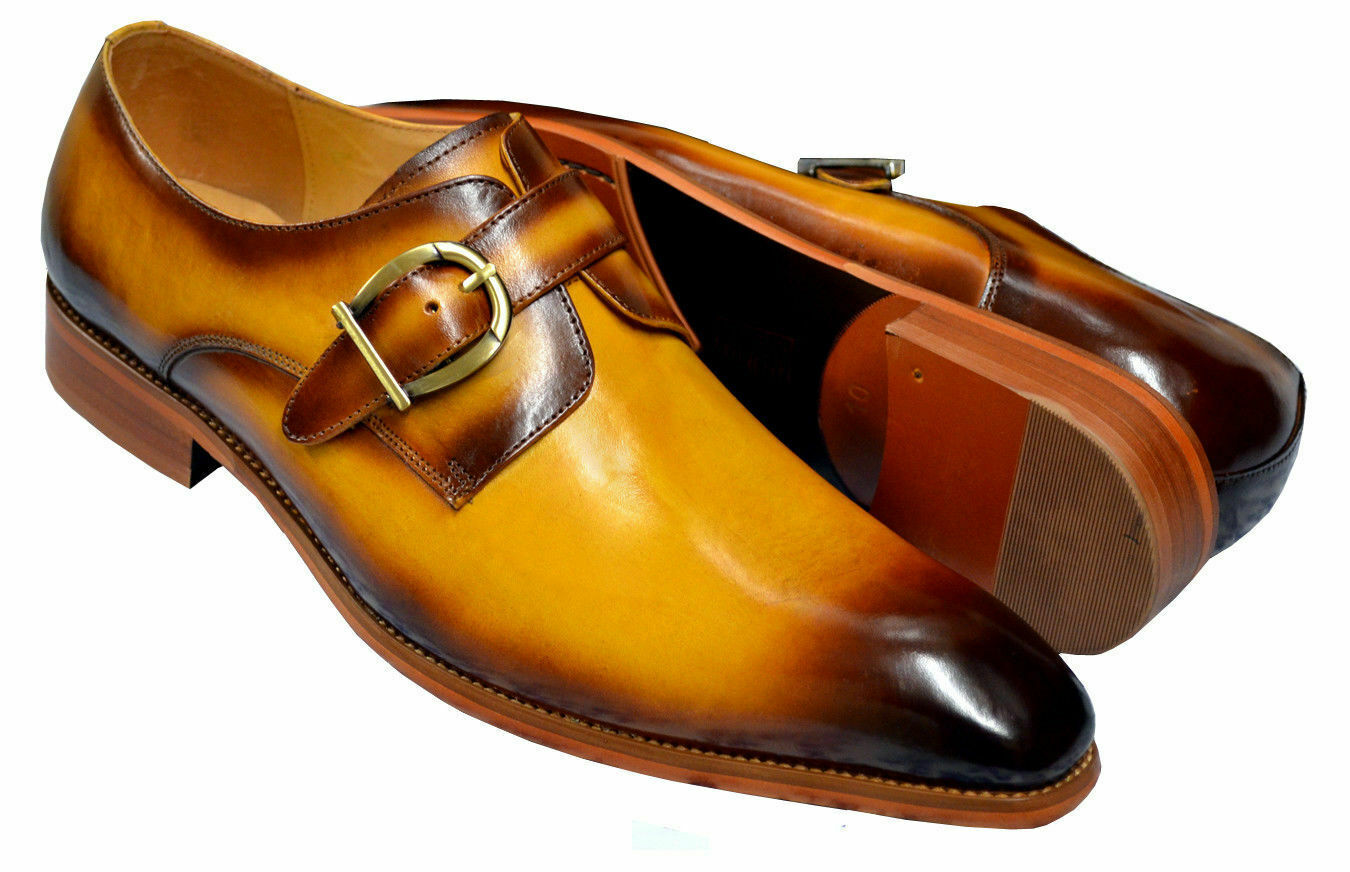 Stylish Men's Handmade Brown & Yellow Monk Strap Shoes, Men Formal Dress Shoes
