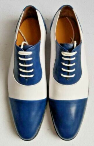 Handmade Men’s Leather Lace Up Stylish Shoes, Men’s White Blue Cap Toe Stylish